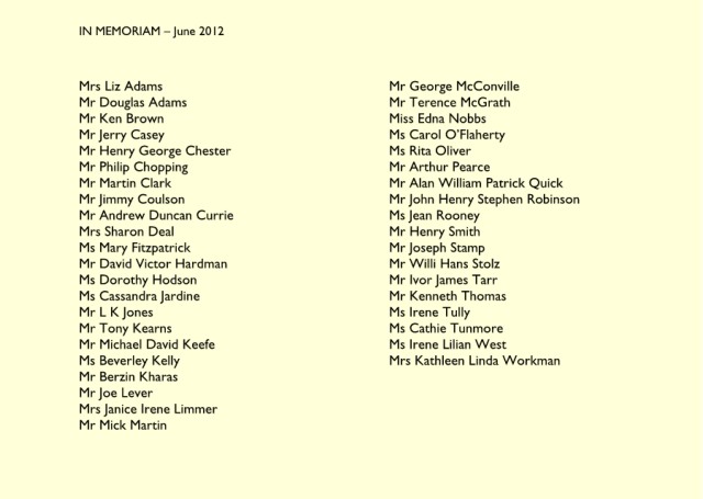IN MEMORIAM – September 2012 Mr Raymond Kenneth Levine
