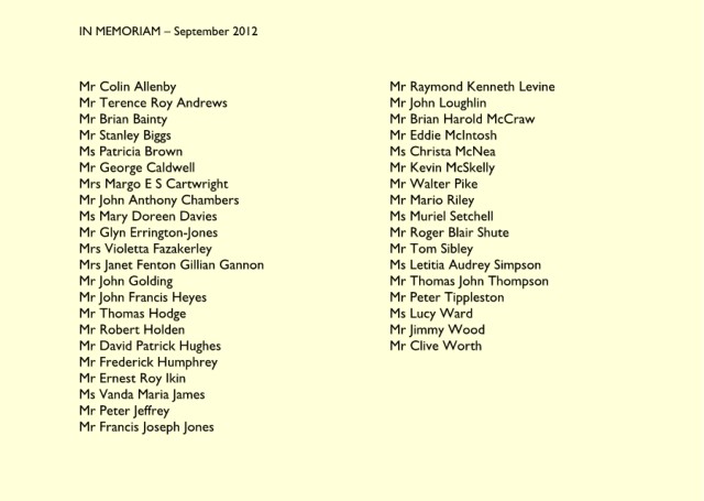 IN MEMORIAM – December 2012 Mr Keith Walter Treadle