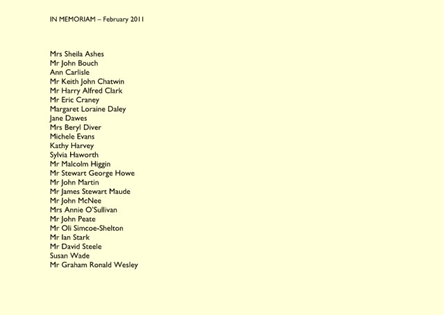 IN MEMORIAM – May 2011 Ms Mary Upham