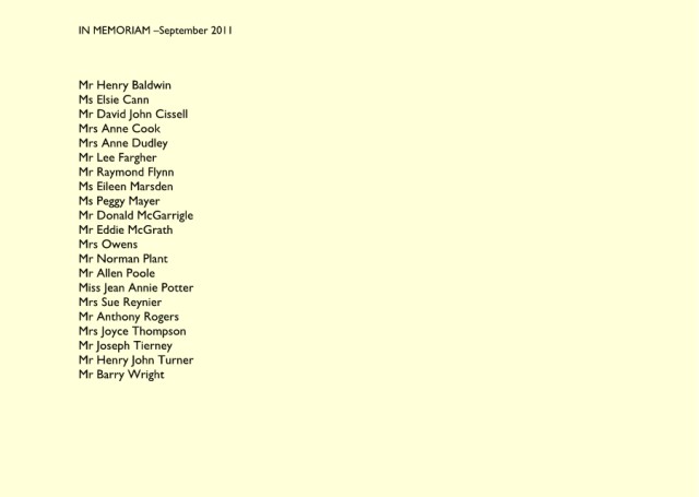 IN MEMORIAM – December 2011 Ms Ellen Vyse