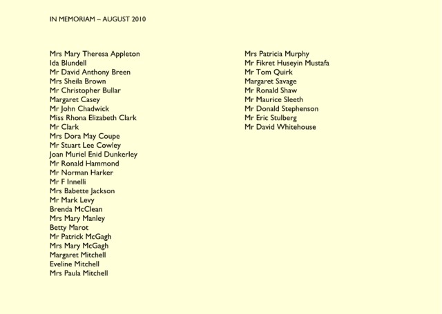 IN MEMORIAM – November 2010