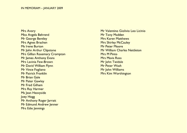 IN MEMORIAM – APRIL 2009 Mr Reamonn O’Neill