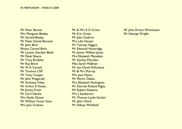 IN MEMORIAM – JUNE 2009 Mrs Joan Spencer