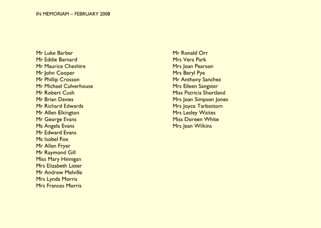 IN MEMORIAM – MAY 2008 Mrs Barbara Watkins