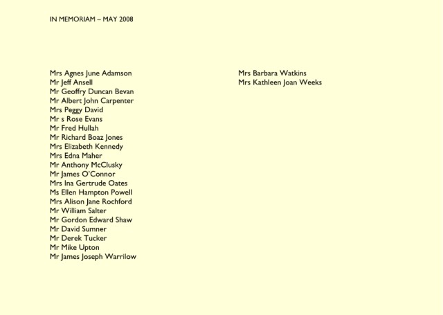 IN MEMORIAM – AUGUST 2008 Mrs Vera Park