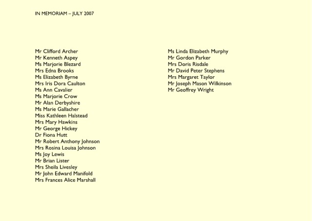 IN MEMORIAM – OCTOBER 2007 Mrs Hilda Wilkinson