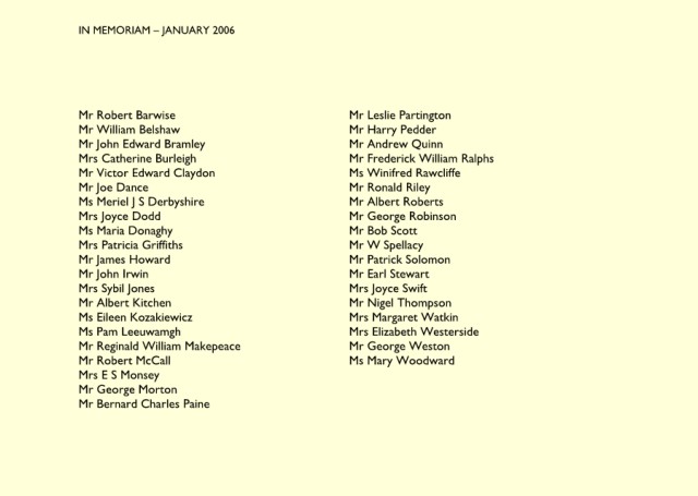 IN MEMORIAM – APRIL 2006 Mr Michael Laight
