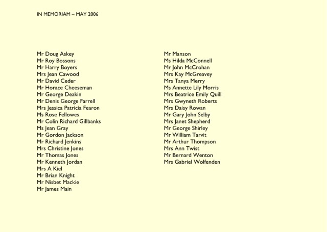 IN MEMORIAM – AUGUST 2006 Mr Thomas Hylands