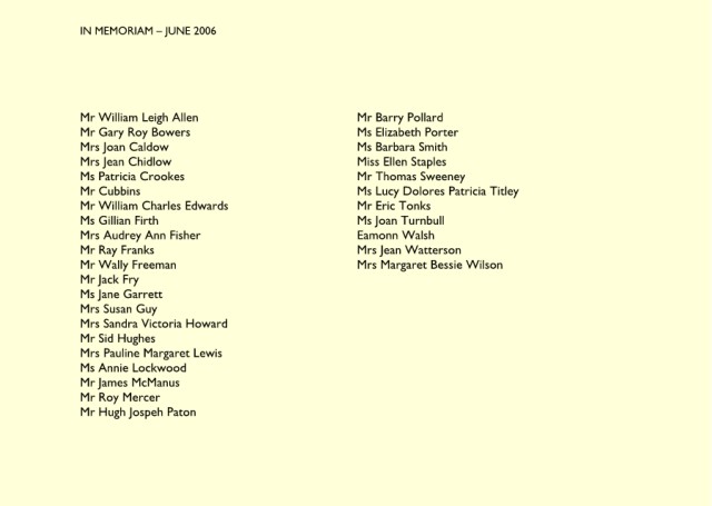 IN MEMORIAM – SEPTEMBER 2006 Mr Gordon McNellis