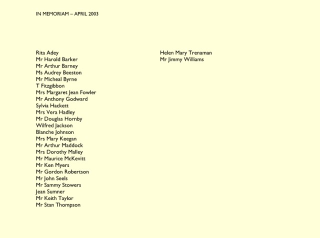 IN MEMORIAM – JULY 2003 Mrs Maureen Parry