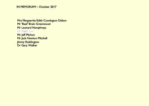IN MEMORIAM – September 2017 Jospeh Cooney Penny Ellway Richard Lang Maureen Smith