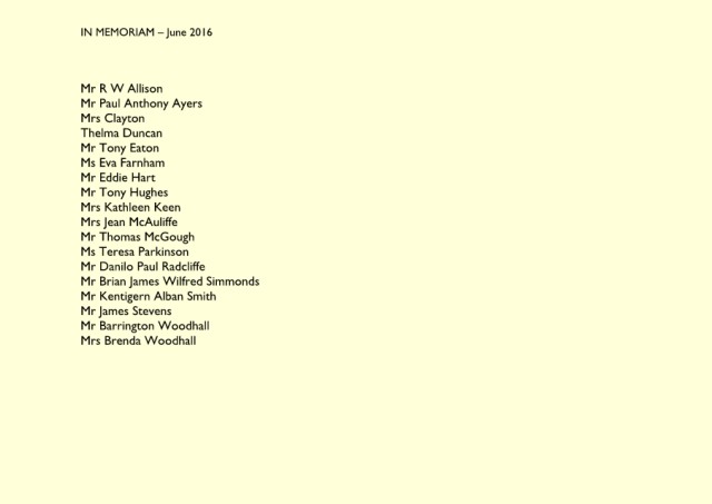 IN MEMORIAM – September 2016
