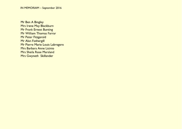IN MEMORIAM – August 2016