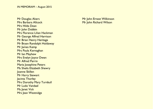 IN MEMORIAM – November 2015