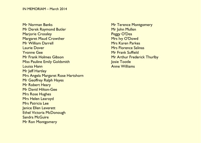 IN MEMORIAM – June 2014 Mr Peter Robinson