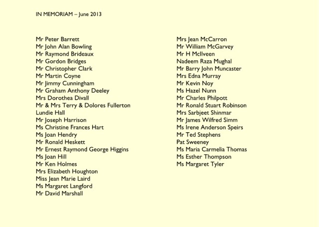 IN MEMORIAM – September 2013 Mrs June Eileen Sheil